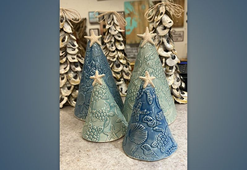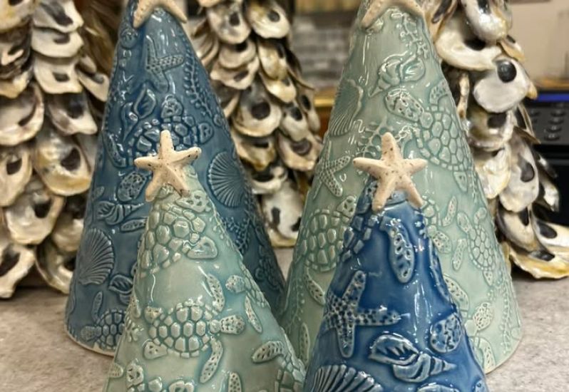 Tammy has done it again!!!! These are SUPER CUTE!! Two Pups Pottery Christmas Trees!!!!! Limited Quantities. Two sizes: Small ($20) and Large ($38). Two colors: Blue and Seafoam!!! We ship!!! SMALL TREES ARE SOLD OUT