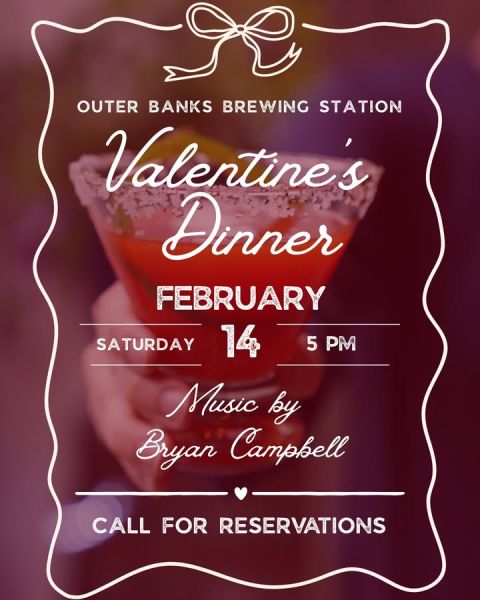 Celebrate Valentine’s Day at the Outer Banks Brewing Station!🩷🍷 Call to reserve your table and enjoy a special Valentine’s Day menu created just for the occasion.