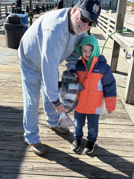 No fish to report yet. #Cloudy with little wind. #Ocean temp 60 degrees, air temp 54. East winds at 3 knots. High #tides 7:35 a.m. and 7:53 p.m. Low tide 2:05 p.m. Al Tillman of Durham holds up a nice, large sea #mullet he landed Wednesday afternoon.