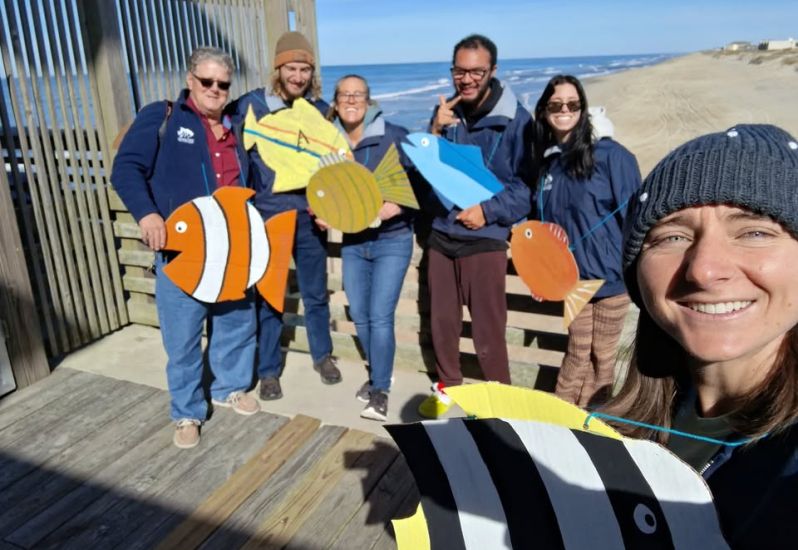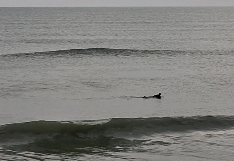 Sunny Day -- Another pretty #sunny day with plenty of BOTTLENOSE DOLPHIN swimming around the #pier. Ocean temp 50 degrees, air temp 43 degrees. #Winds are West at 5 knots. High tide 8:42 a.m. Low tide 3:06 p.m.