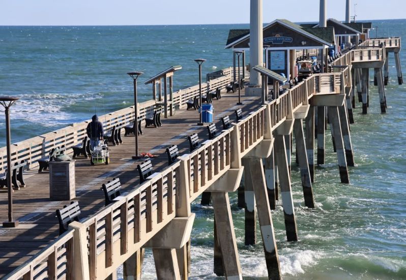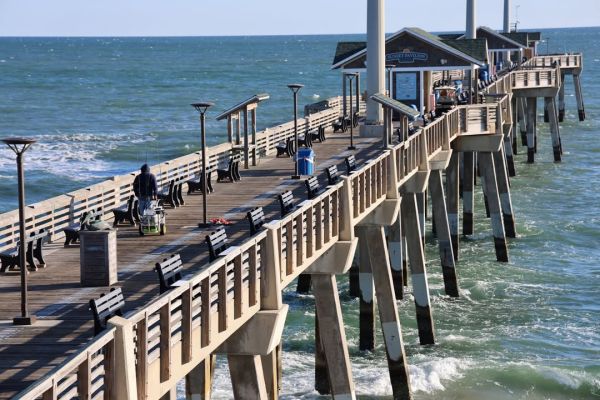 Waiting for the #fish to bite! #Ocean water temp 58 degrees. A gentle NE #breeze of 8 knots coming in from the ocean. High tides 5:55 a.m. and 6:07 p.m. Low tide 12:29 p.m. Dotti holds an #Axolotl stuffed animal in our Pier #Shop.