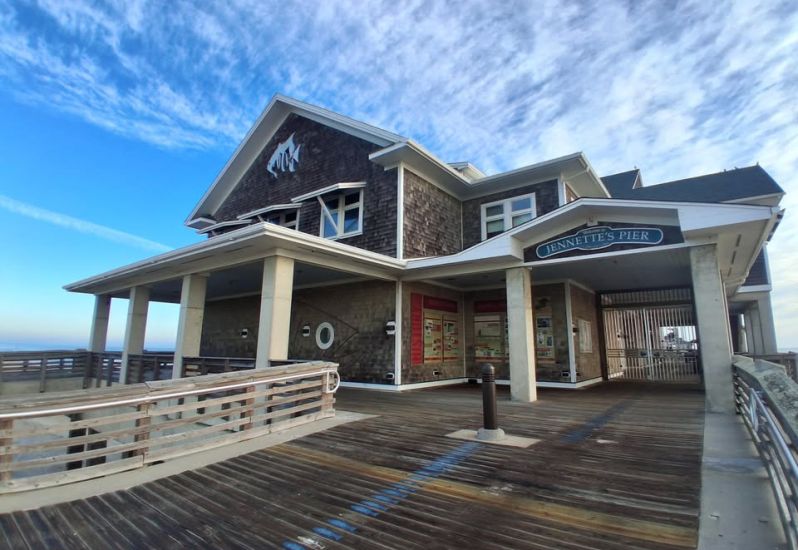 The North Carolina Aquariums and Jennette's Pier are celebrating the our 50th Anniversary, 1976 to 2026, all year long! Today, there's plenty of sunshine and light east winds at 6 knots. The ocean temperature is 49 degrees. Low tide 8:33 a.m. High tide 3:06 p.m. Founded in 1939 and rebuilt in 2011, Jennette's Pier became a member of the Aquariums family in 2003.