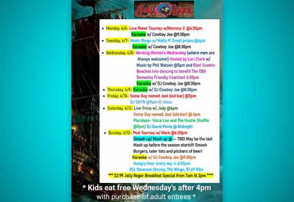 Join us Wednesday, March 11th for a special N.E.S.T. Sea Turtle Fundraiser during Working Womenโs Wednesday at Jolly Roger Restaurant.