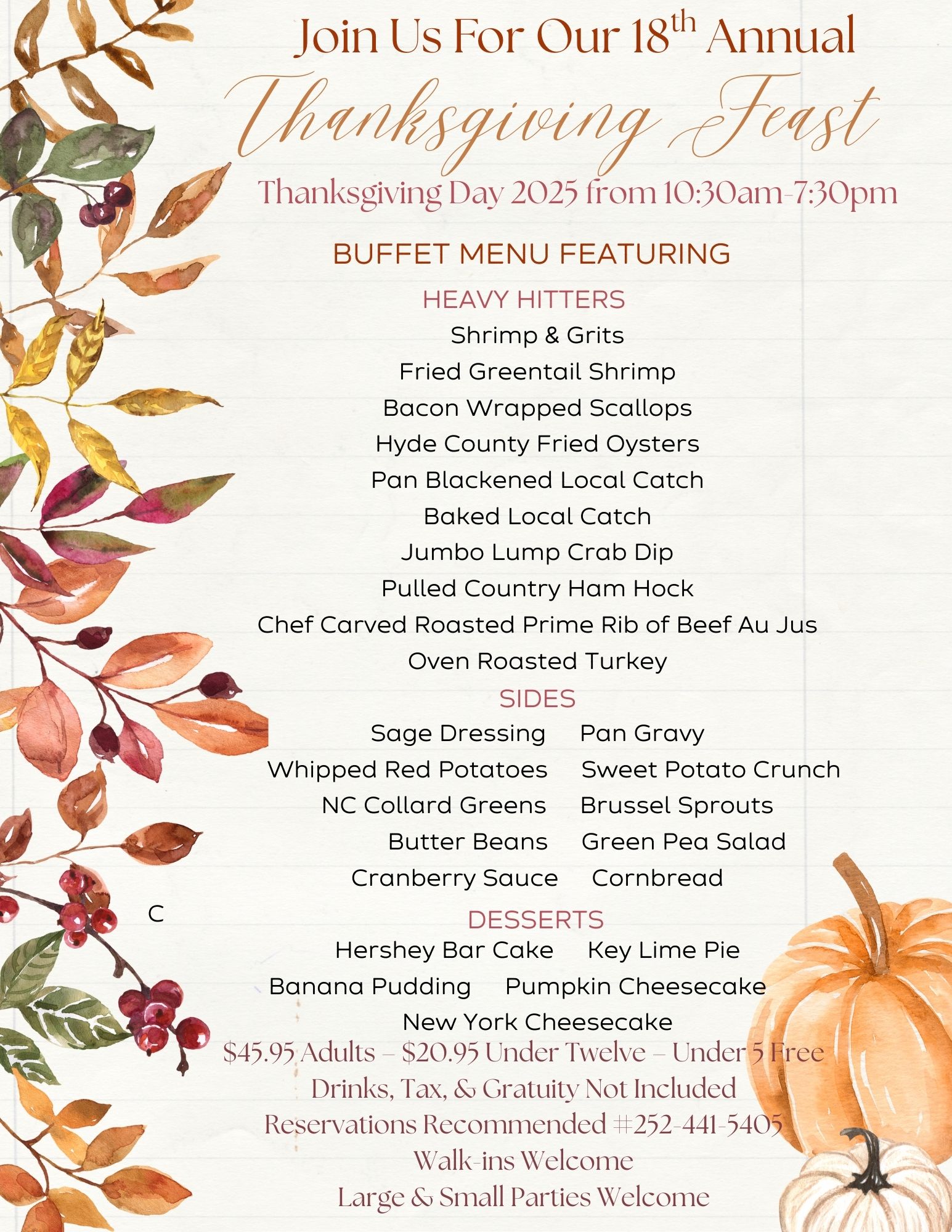 Basnight's Lone Cedar Cafe serves only fresh local seafood caught in North Carolina waters. Our fresh vegetables come from North Carolina farms including our own gardens. Located on the Nags Head/Manteo Causeway, there is a water view from every seat. Outdoor deck dining available.