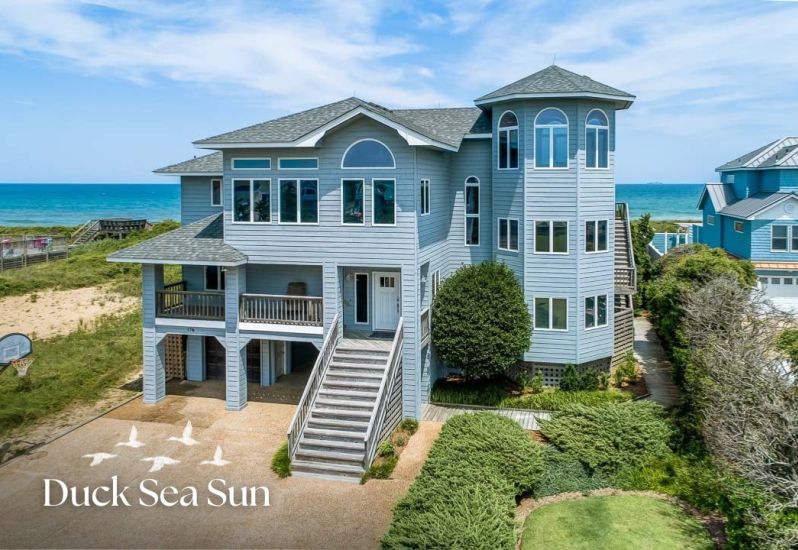 “Duck Sea Sun” is a beautifully designed oceanfront home in Duck Village, offering panoramic ocean views, private bedroom layouts, and... See More