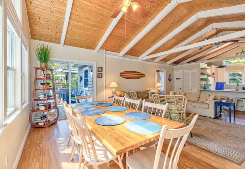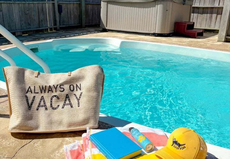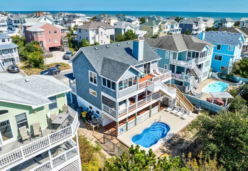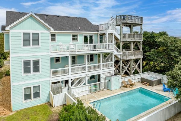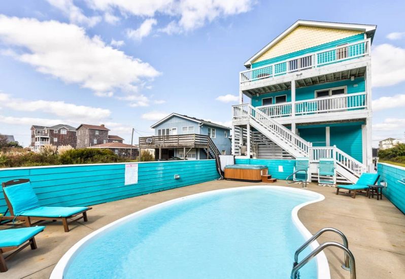 Livin The Dream is a 4 bedroom, semi-oceanfront home in South Nags Head that offers a private pool, hot tub, pool table, beach gear credit, and more. Guests noted that the home had such a warm, welcoming vibe along with a huge pool deck, spacious areas for the kids, and an easy walk to the beach!🌊