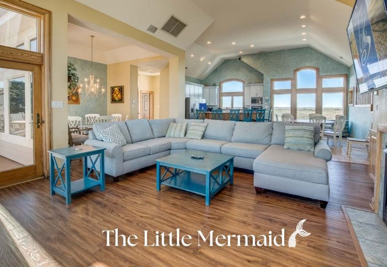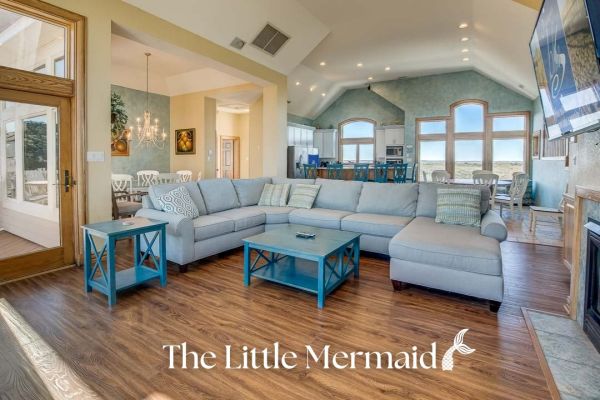 The Little Mermaid is a luxurious semi-oceanfront home in Pine Island that offers stunning ocean and sound views, multiple decks, and access to both a private pool and hot tub for ultimate relaxation. Designed for family gatherings, it features... See More