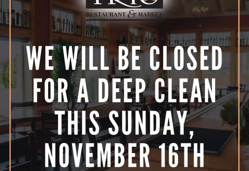 Time for a deep clean! We will be closed this Sunday, November 16th, and will reopen with regular hours Monday, November 17th.