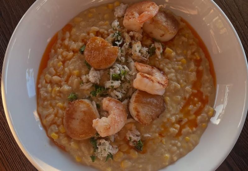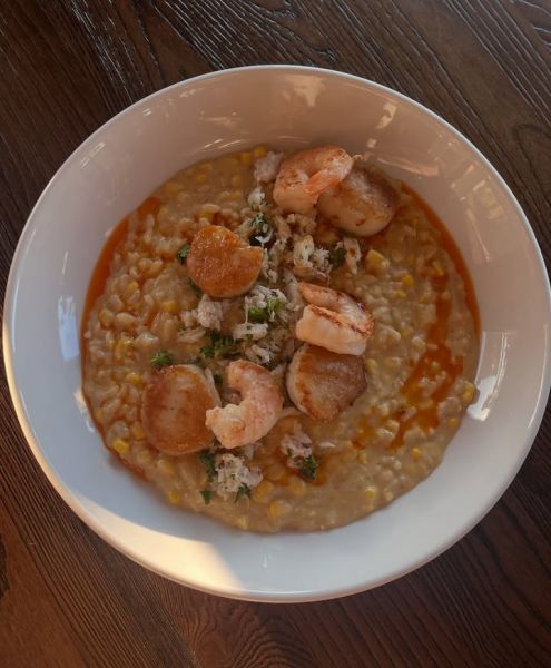Ready to indulge? Our seafood risotto is one of our favorite dishes lately - blue crab risotto topped with seared sea scallops and shrimp.